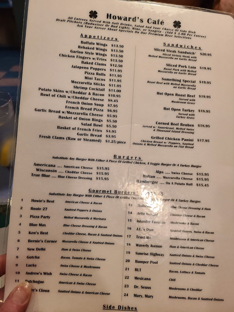 Howard's Cafe Menu